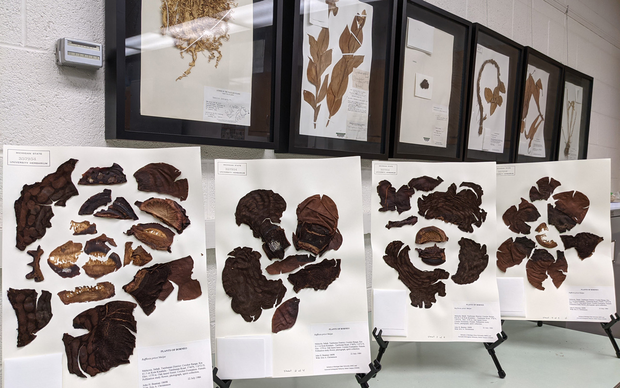 The MSU Herbarium is a collection of over half a million preserved botanical specimens from around the world with a significant number of collections representing the Great Lakes Area. Our mission is to document plant biodiversity, increase awareness of the natural world, and serve as stewards for plant communities. We are an important resource for research, education, and conservation for botanists, who seek to describe the diversity in plant species, their form, their habitats, and their ecology. Additionally, our collection is used by classroom instructors, providing reference material when live plants are not available. Our efforts seek to advance student learning, public outreach, and a broader understanding of the plant and fungal heritage of Michigan and the world.